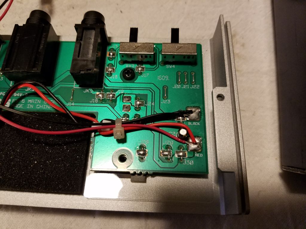 This page documents the modification I made to my Boss FS-6 dual footswitch to accept line power in addition to battery.